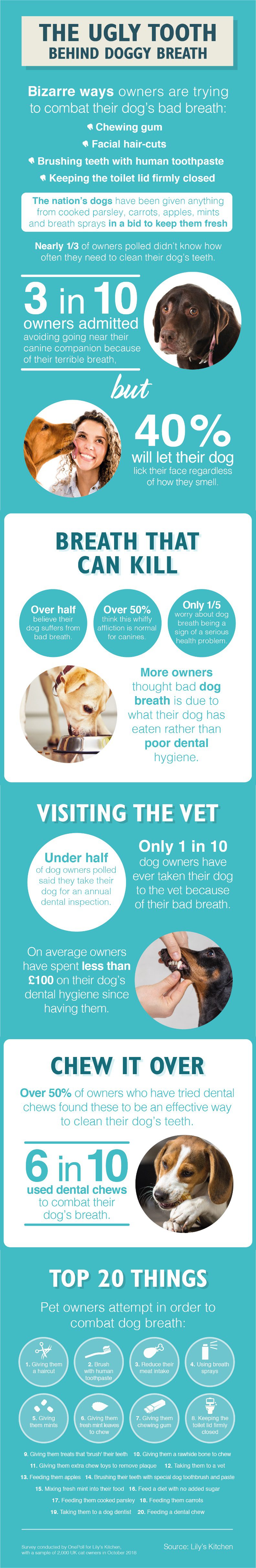 A more confident 40 percent however will let their dog lick their face regardless of how they smell. Under half of those dog owners who were polled said they take their dog for an annual dental inspection. Some six in 10 owners who believed that dental chews were an effective solution said they used them to combat their dog’s breath.